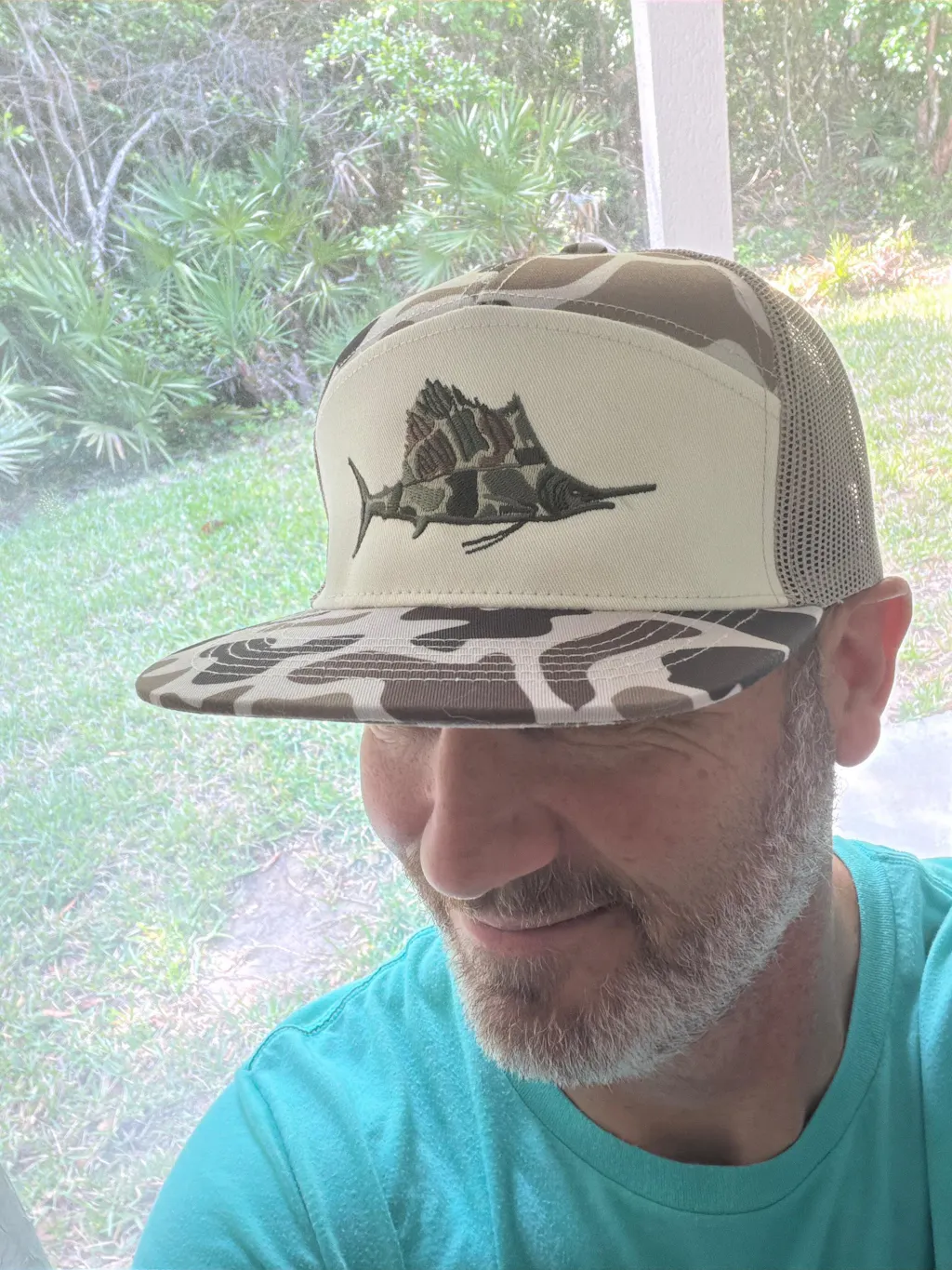 Our Sailfish Edition 7-Panel Hat combines modern style with offshore performance. Featuring a structured 7-panel design, flat bill, and breathable construction, this hat delivers all-day comfort whether you’re running offshore, setting lines, or kicking back at the dock.