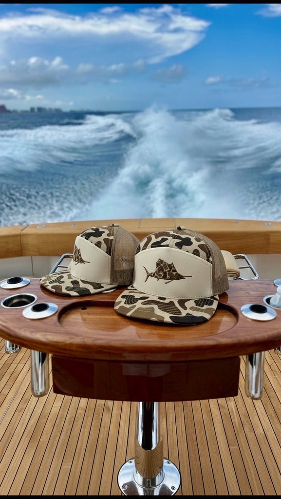 Our Sailfish Edition 7-Panel Hat combines modern style with offshore performance. Featuring a structured 7-panel design, flat bill, and breathable construction, this hat delivers all-day comfort whether you’re running offshore, setting lines, or kicking back at the dock.